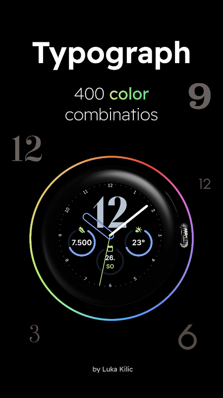 Typograph 是適用於 Wear OS 智慧手錶的最小類比錶盤。