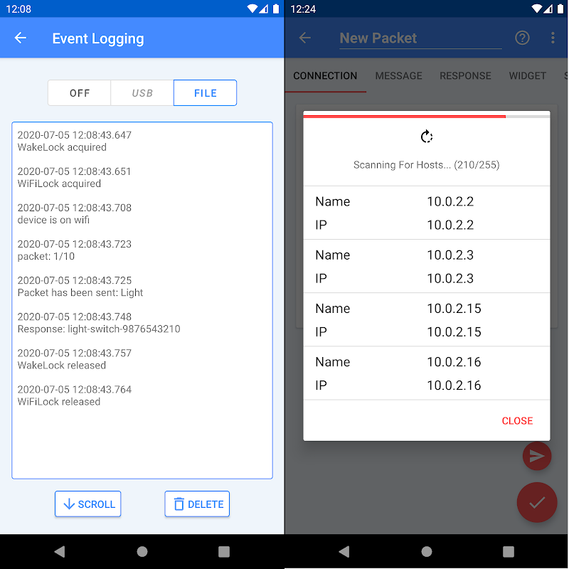 在主屏幕上發送帶有小部件的UDP / TCP數據包。