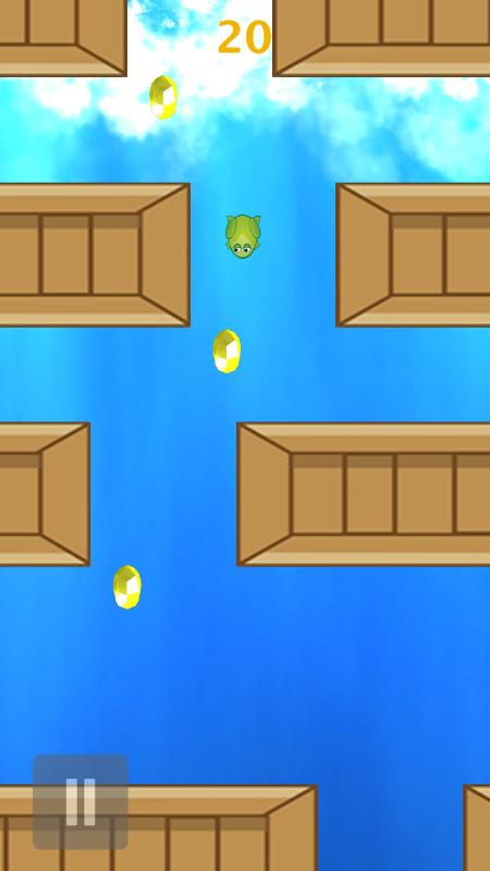 這種艱苦的比賽有一個側面滾動的垂直格式和玩家控制一隻青蛙,試圖而不與他們的接觸障礙之間游泳,服用鑽石,以增加自己的得分。