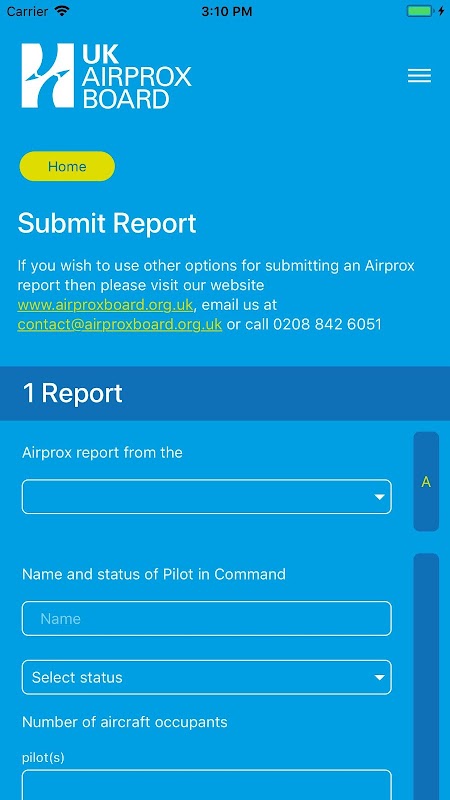 這個程序允許飛行員報告Airprox到UKAB一種簡單方便的門戶。圖像,數據的日誌文件和視頻可以與報告一起上傳,然後通過電子郵件提交給UKAB。發件人也將收到電子郵件的副本到他們指定的電子郵件地址。只有UKAB人員接收報告的電子郵件,從而保持了記者的保密性和UKAB的獨立性。