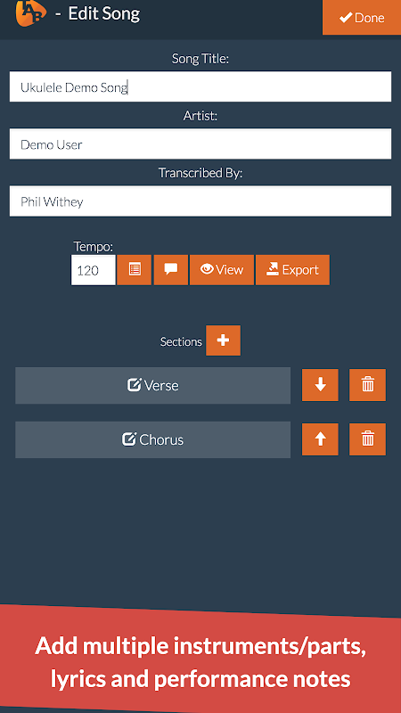 Ukulele Notepad helps you easily and quickly jot down song ideas in guitar tab, save them to the cloud and email them to band mates.