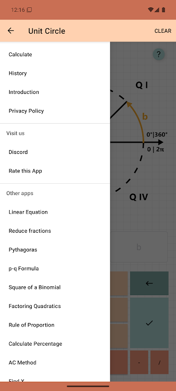 這款應用程式使用三角函數計算單位圓的數值,並附有計算步驟、圖表和動畫,可用於家庭作業、學校或學習輔助。