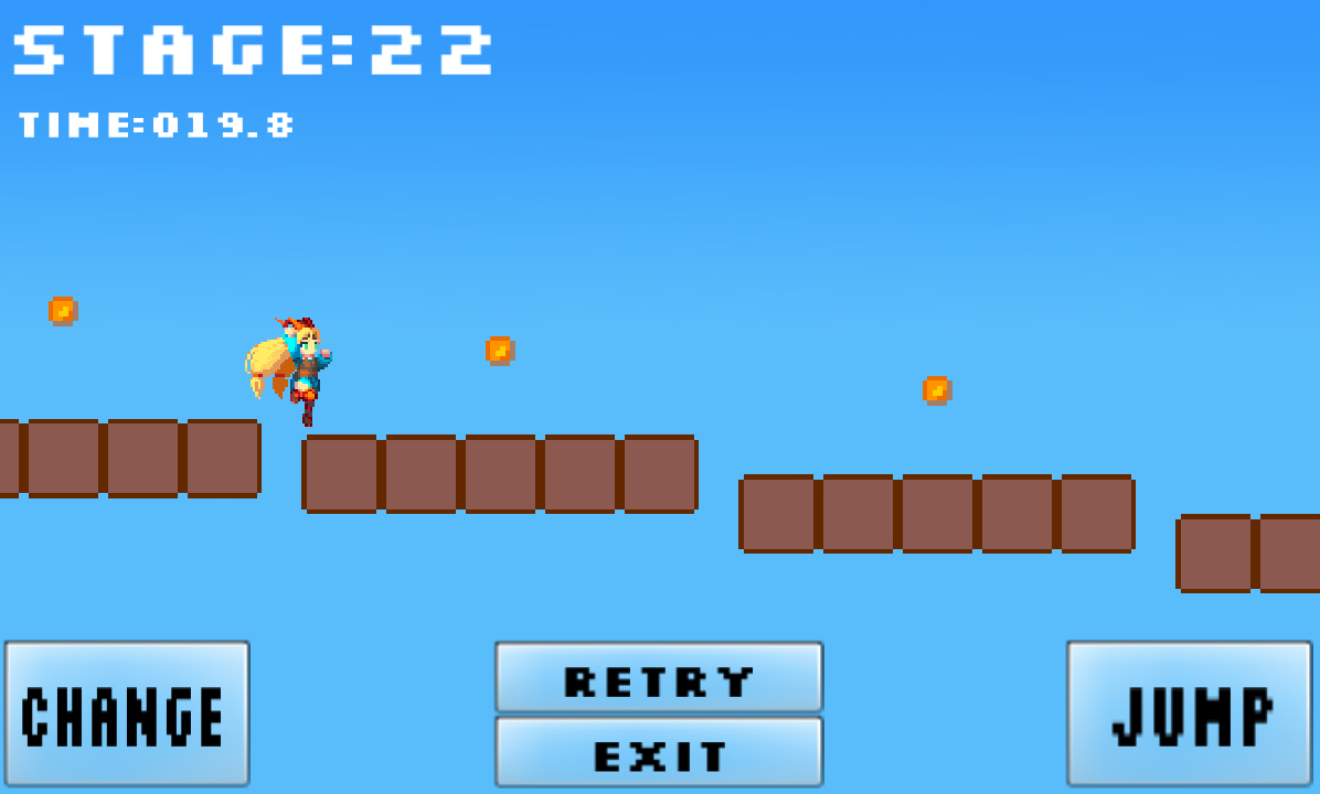 ウソとは言ったけど、もしかしたら想像以上の難易度かも…属性を切り替えてのジャンプがテクニックのみせどころ。タイミングとの駆け引きだよっ。