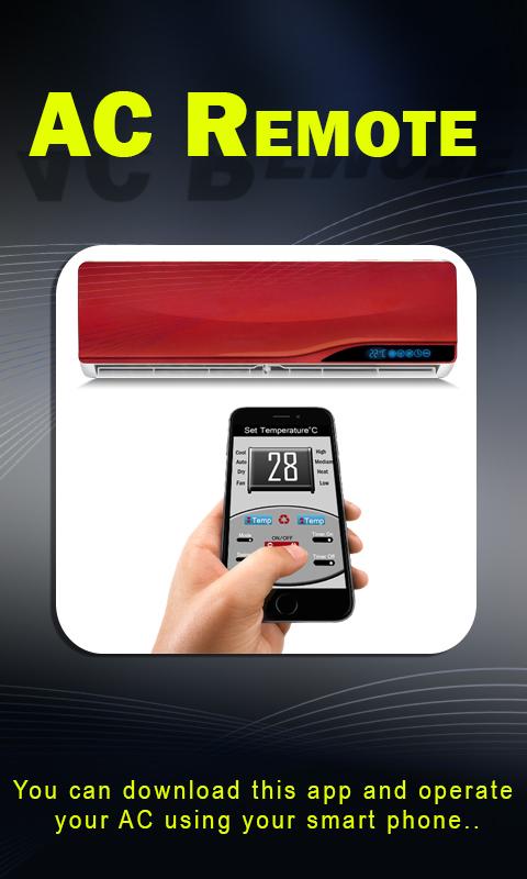 Download and install this Universal AC remote controller app. Write the name of the brand of AC you have or want to make this remote controller. You will be displayed a screen with AC remote controller. You can press temperature button up or down and see the reading changing on the screen. There are various modes adjustment.