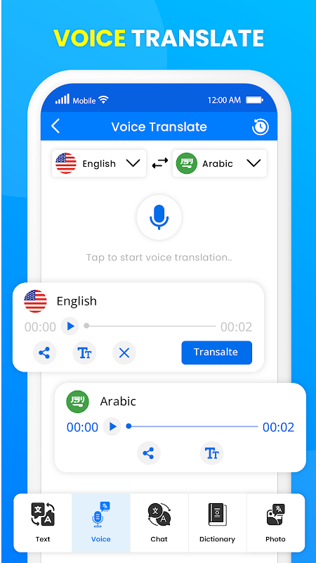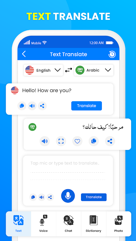 使用全語言翻譯應用程式透過語音翻譯將英語轉換為阿拉伯語。語音翻譯所有語言應用程式允許使用者將多個語音文字從其母語轉換為任何其他語言。只需對著麥克風說話,立即說話和翻譯應用程式即可快速準確地將口語單字轉換為多種語言。 All Language Translator Now 可協助使用者使用「說話和翻譯」來增強詞彙量。語音翻譯器提供一種特殊的方式翻譯成所有語言。