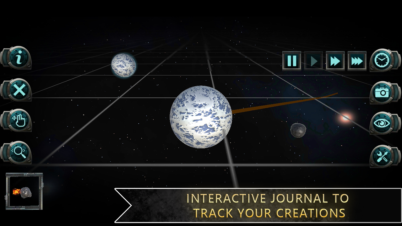 ● Increase or decrease orbit simulation. Real physics, no supercomputer required. Watch planets collide in slow-motion or increase the simulation speed to see mesmerizing physics and beautiful effects.