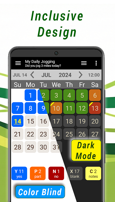 📝 Notes & Journals: Add quick notes to any day to track details.