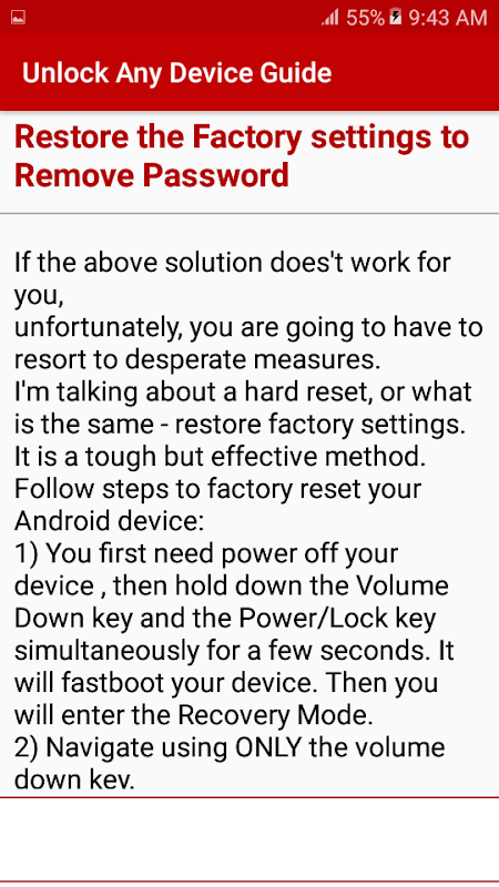 Android mobiles are the most popular phone used by billions of users across the worldwide. Everyone need to secure data or preventing unauthorized use of his data.One method to protect your phone data is to lock your phone screen by pattern, pin or in other way like face recognition. This app provides various types of methods to unlock android and windows mobiles.