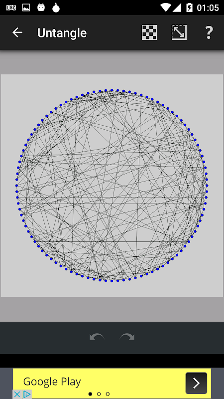 You can choose number of vertices and you would be given a puzzle which you need to untangle.