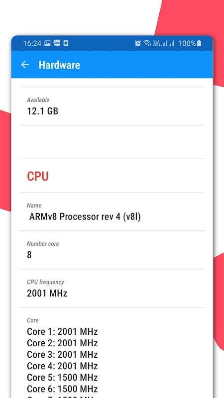 (7) 手機的硬件信息:機器名稱、廠商、型號、屏幕:分辨率、大小和CPU:cpu的芯片信息。