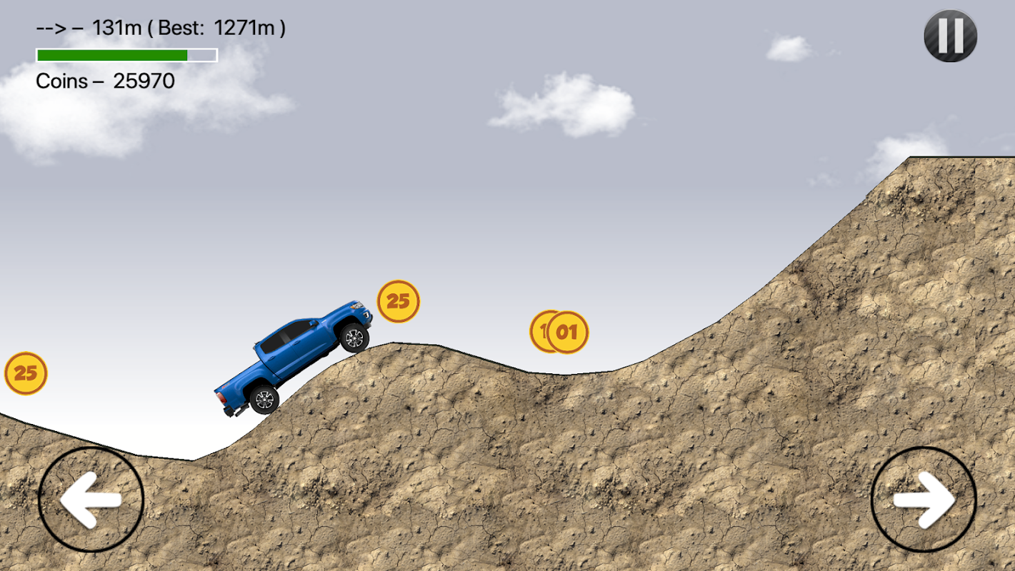 UpHills 4x4 is a game of 4x4 trucks. Your goal is to drive as far as you can, without running out of fuel or overturning your vehicle.