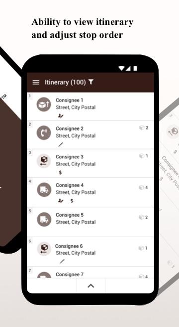 當司機掃描當天要在路上運送的包裹時,將自動創建行程,其中包含按收貨人和地址分組的包裹。一旦上路,司機將擁有送貨選項,例如司機放行、送貨例外、簽名確認和我的選擇選項。輔助圖標將顯示,讓司機了解每個站點內的包裹類型,例如 COD 和需要簽名。