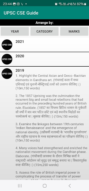 UPSC CSE Prep 包含過去 10 年 CSE Pre 的練習題和答案。
