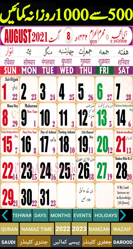 ✭Rabi-ul-Awwal 2022 ☪✩✨ Ramadan 2023 ☪✨ Eid-al-Fitar 2023 ☪✨+ Muharram 2024 ☪✨ ✭ + Ramadan 2024 ☪✨ + Calendar 2022 - 2023 - 2024 + Government Holidays 2022 ❂ - Islamic Events ❃ + Namaz Time Table 🌠+ 1000+ Masnoon Duain ✤ + Qurani Wazaifs ✭ ✭ Nawafil ✭✭ Urdu Hijri Calendar ✭✭ Light weight app.