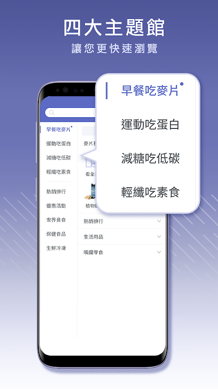 早餐吃麥片、運動吃蛋白、國內外嚴選生活用品三館合一,滿足您對健康時尚生活的要求。