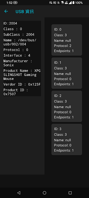 USB Information 是一款專為 Android 裝置開發的 USB 裝置資訊與測試工具。當你透過 USB Type-C 接上任何裝置,本應用會自動偵測所有 USB 裝置,並清楚顯示其名稱、製造商、VID、PID 等硬體資訊,無須 Root,即可進行專業等級的裝置存取測試。