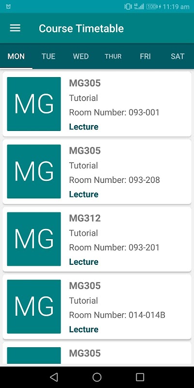 • Displays student’s Course and Exam Timetable for their registered courses.