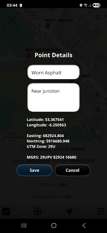 UTM 地圖在地圖上顯示緯度 - 經度、MGRS 和 UTM X、Y 座標。您可以查看您的座標,也可以取得地圖上任何地點的座標。 使用者可以在地圖上看到GPS、指南針方位角和指南針的精確度。它以 6 度顯示 UTM 區域。您可以儲存或刪除點。該應用程式可以導航到一個點,以不同的單位顯示距離。您可以顯示緯度、經度和 UTM 座標列表。您可以分享緯度、經度或 UTM 座標。它具有全螢幕模式,可以全螢幕顯示地圖。您可以獲得地圖上任何位置的任何坐標信息,並且可以保存地點。