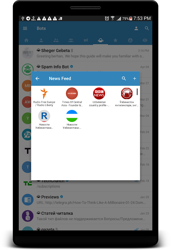 Uzbek Telegrammmasi Messenger syncing with your other devices and applications. Unlimited number of messages of text, photos, videos any file type you can send. You can create groups of up to 100,000 people.