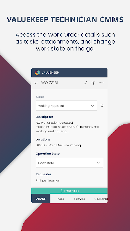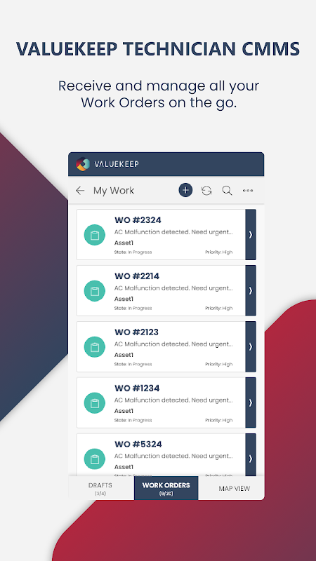 Valuekeep Technician CMMS,隨時隨地管理維護的最佳方式。適用於維修技術人員。