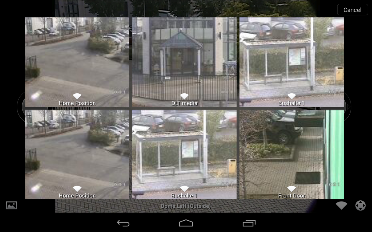 - 選擇攝像機:通過水平和垂直刷卡通過攝像頭的位置選擇你的相機。通過縮略圖和攝像機名稱識別視頻通道。