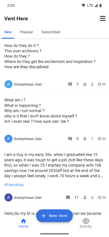 通風在這裡,您可以發洩所有想法,獲得幫助,並向匿名發洩者提供幫助。