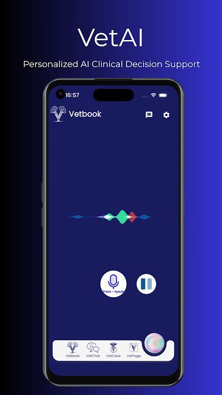 透過語音或文字查詢獲得即時支援:鑑別診斷、治療建議、文獻檢索等等。由 Vetbook 客製化訓練的人工智慧驅動,隨時為您服務。