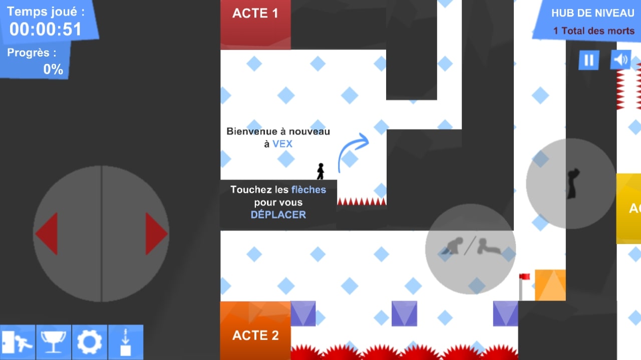 在 Vex 3 遊戲中,您必須避開陷阱、奔跑、跳躍、滑行和游泳,通過 10 個關卡和 9 個額外的挑戰模式。