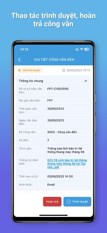 Không chỉ vậy、VFFConnect còn cung cấp các tính năng nâng cao như gửi thông báo và nhắc nhở cho nhân viên、chia sẻ tài liệu và thông tin liên quan、cung cấp h ệ thống phê duyệt công văn và nhiều tính năng khác, giúp bạn tiết kiệm thời gian, tăng năng suất và cải thiện sự tương tác trong tổ chức