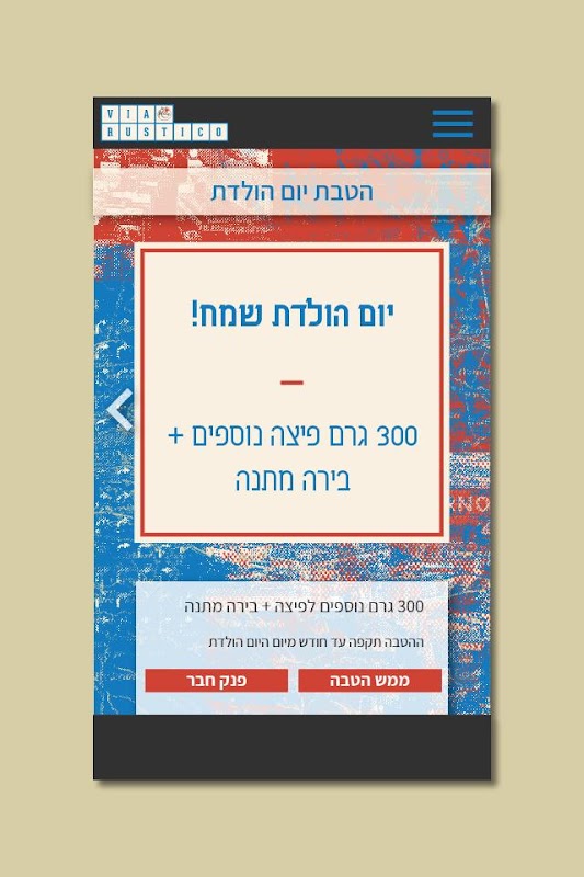 ויה רוסטיקו מתחדשת באפליקציה ואתם נהנים מהטבות בלעדיות לחברי מועדון .
