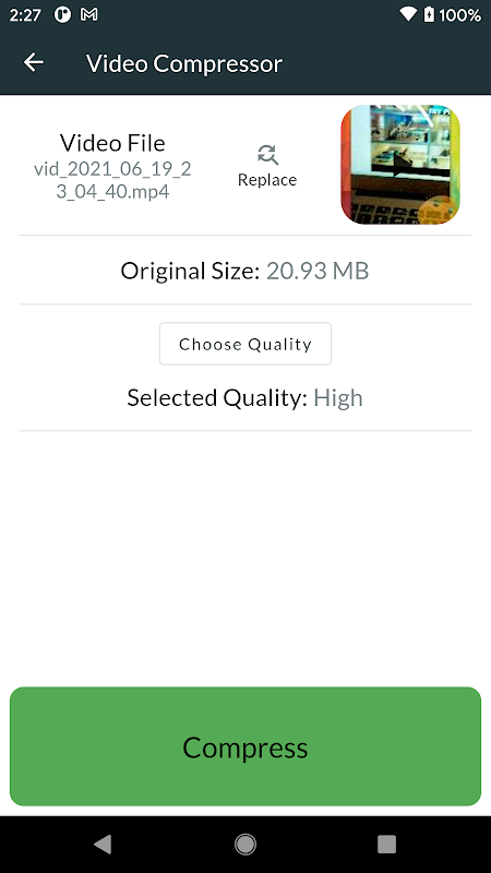 3. Press compress and wait a few seconds for the compressed video.