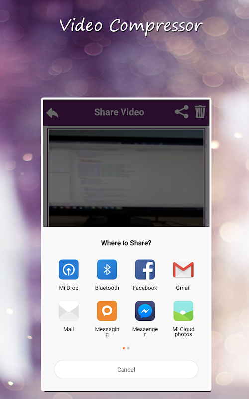 Video Compressor allow you to compress your favorite video and share it to your loved ones. You can compress the video, see the preview and share it.