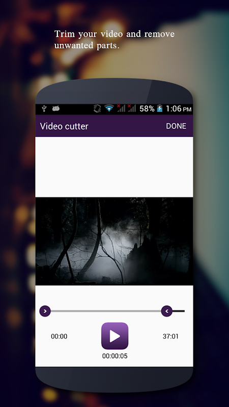 - Video Cutter : Cut your video easily using range seekbar, play/pause button and timing.