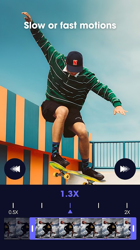 - 編輯影片速度,只需選擇慢或快的級別,編輯器就會自動更改時間,從而使影片的內容和聲音平滑地變慢或變快。