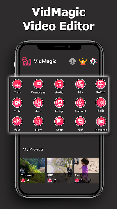 VidMagic 是一款一體式專業視頻編輯應用程序。您可以在幾分鐘內使用最有用的強大視頻編輯工具輕鬆編輯視頻,以滿足您的日常需求,並可以在各種社交媒體平台上共享。