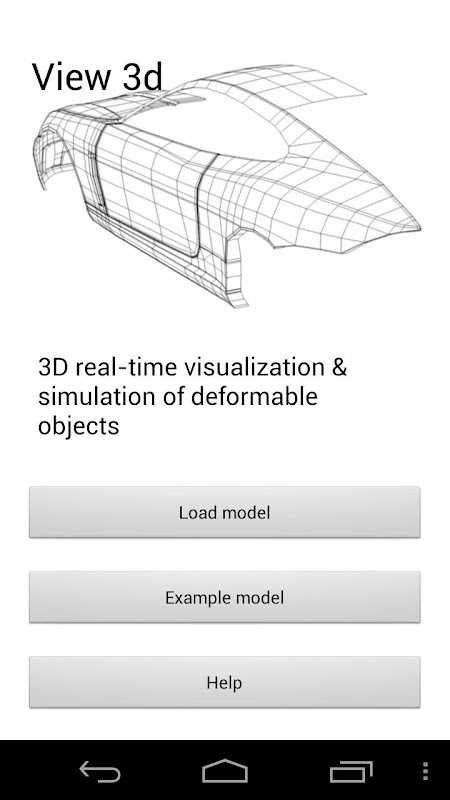 L'applicazione contiene dei modelli precaricati, ma si possono caricare altri modelli (in formato OBJ) immettendo il percorso della memoria interna dove sono salvati. Si consiglia di utilizzare modelli dalla geometria poco complessa per non gravare sulle performance.