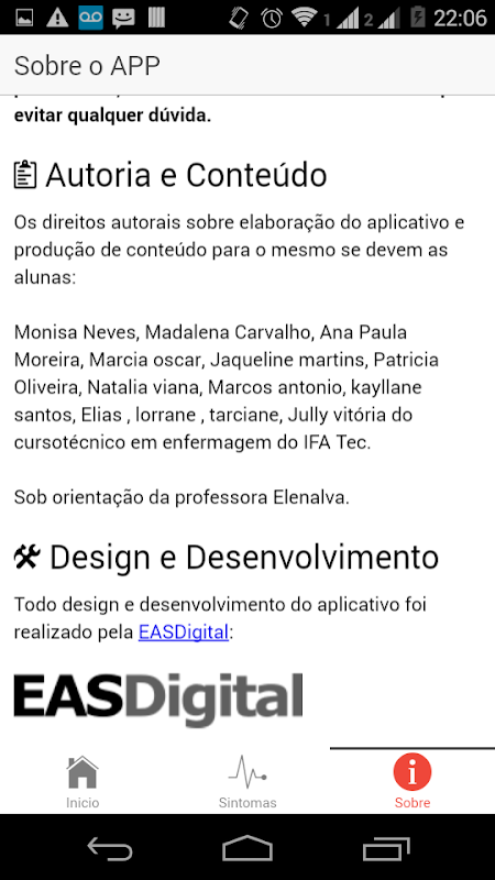 Os direitos autorais sobre elaboração do aplicativo e produção de conteúdo para o mesmo se devem as alunas: