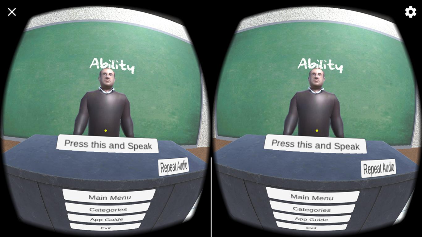 Learn how to pronounce English words properly in the virtual reality environment with different categories using this simulator.