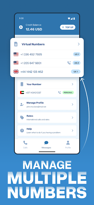 取得來自指定國家的真實手機或座機號碼,無論身在何處,都能像當地人一樣撥打或接聽電話。
