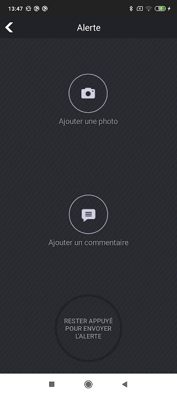 -允許您使用應用程序任何頁面上的帶照片的“警報”按鈕,隨時通過應用程序向VISOR®發送警報並發送評論。