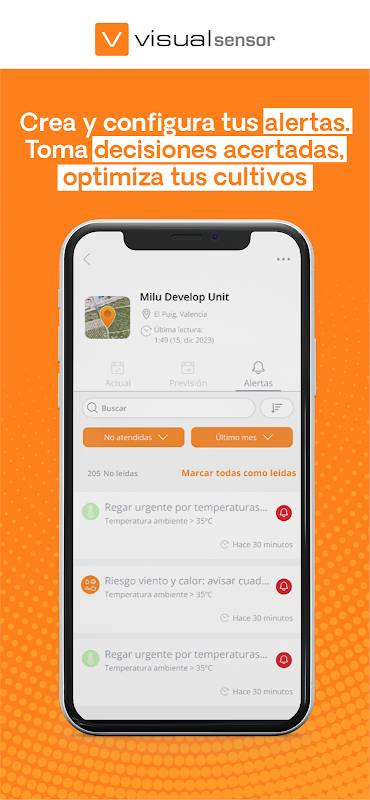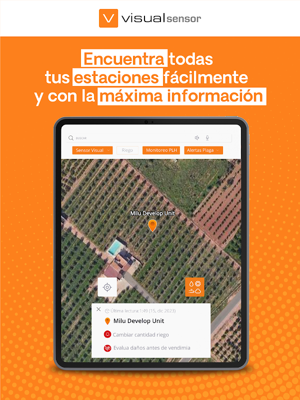 它可以減少作物在大雨、霜凍或中暑預報中可能面臨的風險。使用 VISUAL SENSOR,您將能夠解決收成減少的問題,並且您將實時監控田地連接,從