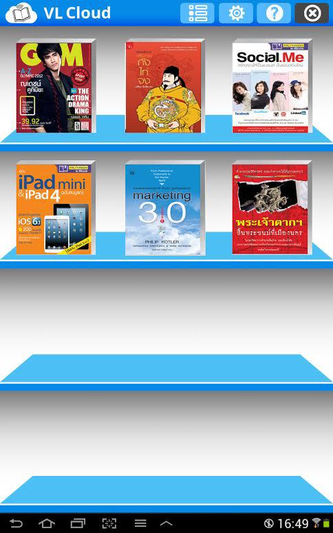 App VLCloud Library. It also provides features that help users storing and selecting varieties of books. With its systematic categorization management, the items in the library will be categorized into types: newspapers; books; magazines; photo albums; and catalogs. They can be further searched with alphabetical keyword index. The contents of the library can be displayed by: titles display covers, spine or name list.