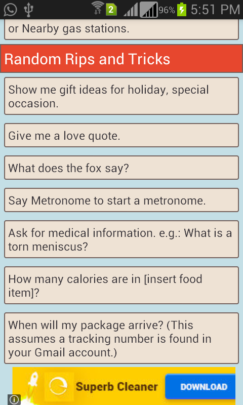 Whether you're checking the weather, setting reminders or searching for flight information, Voice Commands Guide is at hand. Here's a list of more than 100 useful voice commands you can try today to make life easier.