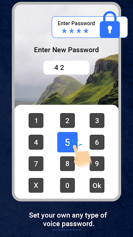 您只需說出您的密碼並打開您的鎖,即可獲得全新風格的鎖屏 任何時候您都可以輕鬆更改此密碼。您還可以為語音鎖定屏幕更改不同的背景。