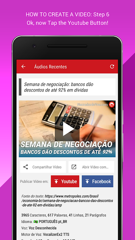 - Voice Narrator for Youtuber, if you are Youtuber and want more access, use our totally free app, it does all the work in just 1 app, it turns your text into audio and then converts audio into video with the image you have. If you want, without a watermark, the generated video can also be published on Facebook, Instagram, Twitter or wherever you want, all for free, we will not charge you anything, and the advertising that is in the app does not hinder your creation of videos and audios.
