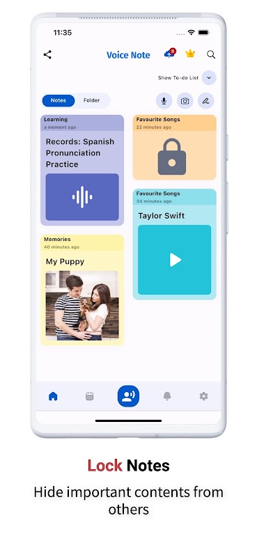 👑 語音筆記和語音備忘錄 👑 也是領先的語音筆記應用程序,具有許多出色的功能,例如將語音轉錄為文字而無需打字即可輕鬆記筆記。特別是,它允許您製作語音備忘錄來儲存聲音、熟悉的人、熟悉的事物或您的寵物的聲音...用音訊、照片、影片、文字做筆記...