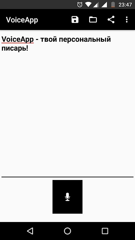 VoiceApp напишет то, что ты говоришь! Он может записывать твои рассказы или лекции часами! Редактируй текст прямо в приложении или отправь его на компьютер! Поделись записью с друзьями! Также ты можешь изменить язык, размер, стиль или цвет текста.