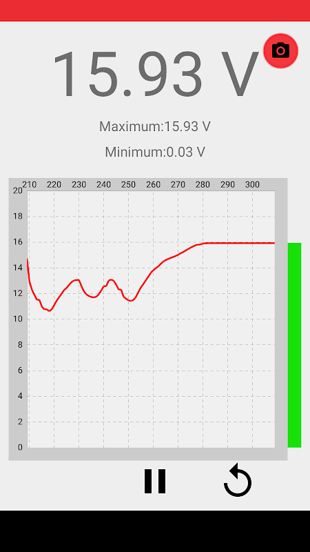 Con esta aplicación puede medir el voltaje con el teléfono móvil Android. Proporciona las unidades de voltaje medido de forma numérica y gráfica.