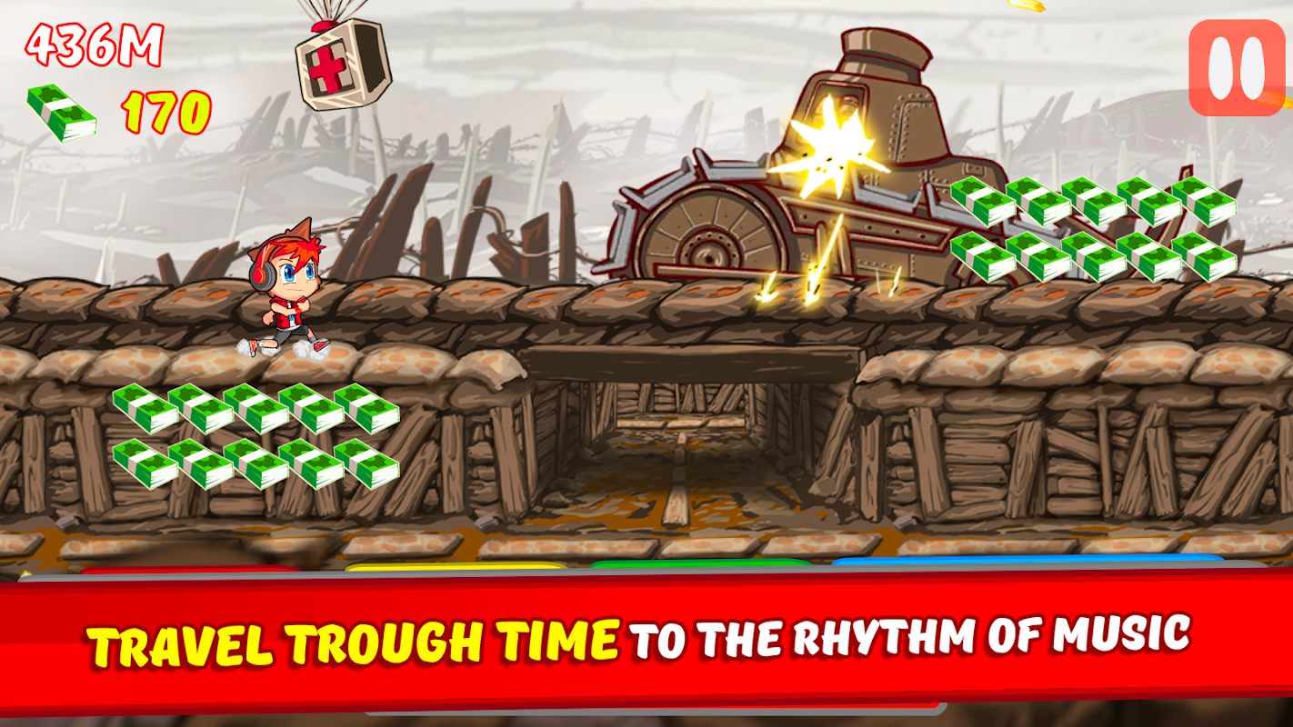 加入漫步男孩在這個超級原有的運行遊戲,並通過時間旅行音樂的節奏,但要小心不要碰到某些對象,因為如果你這樣做,歷史可能會轉向混亂!跑,跳,滑板,衝浪,急轉直下,使跑酷生存你的敵人和障礙。