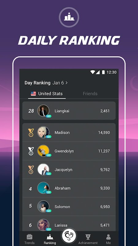 - Now You can compete step ranking with whole country! Daily steps and rank data update timely. Invite your friends to training together. Walk more and occupy your friends’ cover. Keep going and level up.